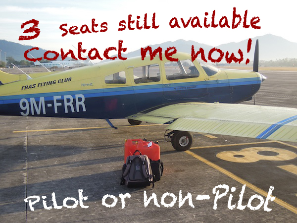 It is some time now since our last flight around Malaysia. This is not a good state of affairs! The VFR lanes of Malaysia are deserted and the air traffic controllers haven’t heard a fumbling low time PPL for too long. Let’s go and change that. I am organizing a flight safari from the 13th To the 16th of October and look for company. Whether you are a licensed pilot or not does not matter, everybody is welcome.