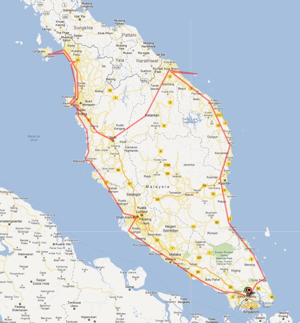 We will set a clock-wise course. That means on the first day we will go along the West coast to Langkawi via Malacca, Subang, Pangkor and Penang. We will stay over night in Langkawi and cross the mountains the next day and stay in Kota Bahru for one or two nights.