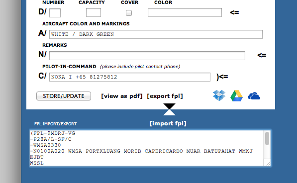 This weekend, I only used the EuroFPL service to file my flight plan. The fax numbers in Subang didn’t work anymore with eFax and the AFTN communication system is more reliable anyway. The EuroFPL service allows exporting and importing in the FPL AFTN message format. If you would like to use my flight plans as a template for your own plans, you can copy the FPL messages below (everything including the starting and ending brackets) and paste them into the FPL Import/Export field. Once you press the import button, the FPL form should be populated with the information. Don’t forget to change the aircraft sign, type, capabilities, speed, altitude etc.