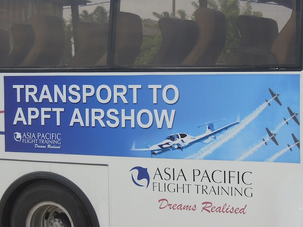 From 19 to 21 April 2013, I flew to Kota Bahru to join the Air Carnival organized by the Asia Pacific Flight Training to celebrate the graduation of their students.  Two other aircraft from WoA in Singapore were there as well (DA40 and Columbia 350), and the “Extreme Midlife Aerobatics” crew brought a Piper Arrow (Marcus Walther) and the Giles 202 for the aerobatics display.  APFT is one of the biggest flight schools in Malaysia and has their main bases in Kota Bahru, Terengganu and, I think,  smaller ones in KL and Ipoh.